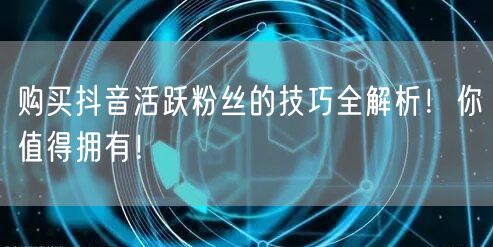 随着抖音平台的日益发展,越来越多的个人和企业希望通过这一社交媒体平台实现品牌宣传、产品推广等目标。而拥有大量的活跃粉丝,则是提升账号曝光率、实现影响力的关键。本文将为你全面解析购买抖音活跃粉丝的技巧,助你快速增加粉丝数量,提升账号价值。