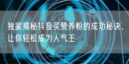 抖音已经成为现代人生活中不可或缺的一部分,越来越多的人希望通过这个平台成为人气王。本文将为你独家揭秘抖音买赞养粉的成功秘诀,让你轻松提升人气,成为抖音界的明星达人。