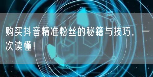 随着抖音平台的日益普及,越来越多的个人和企业开始意识到拥有大量精准粉丝的重要性。本文将为您揭示购买抖音精准粉丝的秘籍与技巧,帮助您快速增加粉丝数量,提升影响力。
