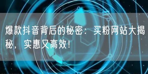 在当今社交媒体盛行的时代,抖音已经成为了一个无法忽视的平台。许多用户通过抖音实现了快速粉丝增长,其中背后的秘密究竟是什么呢?今天,我们就来揭秘抖音爆款背后的秘密,特别是买粉网站的作用,它们是如何助力粉丝快速增长的。