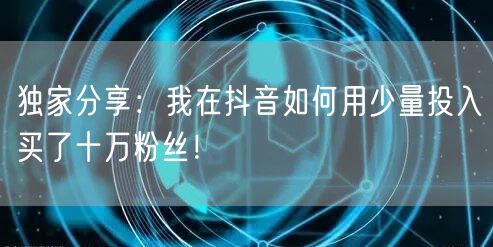 通过本文的独家分享,相信你已经了解了如何在抖音平台以少量投入购买十万粉丝。当然,购买粉丝只是扩大影响力的一种手段,真正的关键在于持续发布优质内容,与粉丝保持良好的互动关系。希望本文能对你有所帮助,祝你在抖音平台上取得更大的成功!