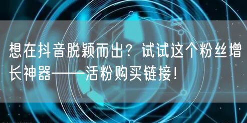 抖音已成为当下最热门的社交媒体平台之一,无数用户在这里分享生活、展示才艺。想要在抖音上脱颖而出,吸引更多粉丝关注,除了优质内容外,还需要巧妙的营销策略。今天,我要向大家介绍一款粉丝增长神器——活粉购买链接,助你轻松在抖音世界中获得更多关注。