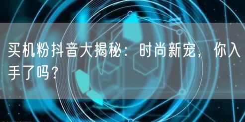 随着科技的飞速发展,越来越多的新兴产品成为了我们生活中的时尚新宠。其中,买机粉在抖音上的火热程度可谓一路飙升。今天,就让我们一起揭开买机粉在抖音上的神秘面纱,看看这款时尚新宠究竟有何魅力,你又是否入手了呢?