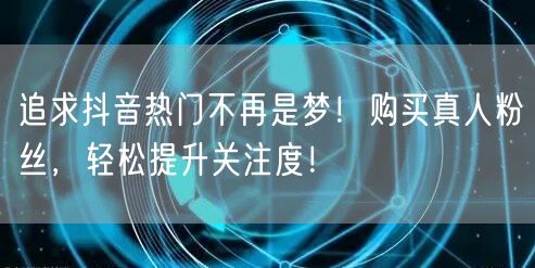 在抖音这个短视频平台上,想要迅速获得关注和认可,拥有大量的粉丝是必不可少的。然而,对于许多新手用户来说,如何快速增加粉丝数量,提升关注度却是一个难题。今天,我们将探讨一个有效方法——购买真人粉丝,帮助你轻松实现抖音热门的梦想!