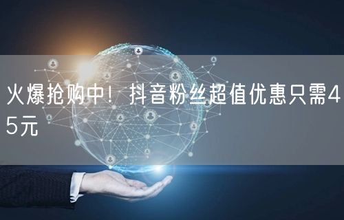近期火爆的抢购活动正在火热进行中!亲爱的抖音粉丝们,好消息来啦!我们特意为大家准备了一场独家超值优惠活动,只需45元,就能享受到我们为你准备的多重惊喜。