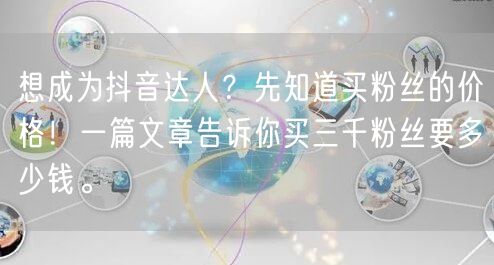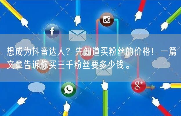 随着抖音的普及,越来越多的人梦想成为抖音达人。而想要快速增加粉丝,买粉丝成为了一些人的选择。那么,买粉丝需要多少钱呢?本文将从买三千粉丝的价格入手,为你揭示其中的秘密。