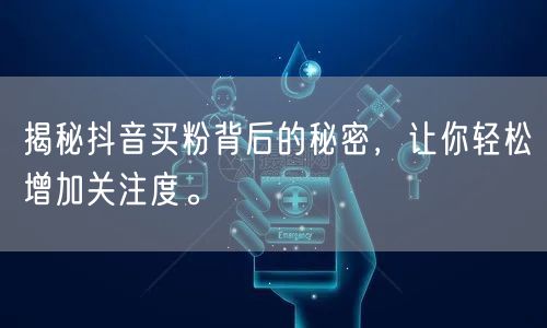 随着抖音等社交媒体的兴起,越来越多的人开始关注如何在这个平台上快速增加关注度。其中,买粉成为了一种看似简单直接的方式。那么,抖音买粉背后究竟隐藏着怎样的秘密呢?接下来,让我们一起揭秘。