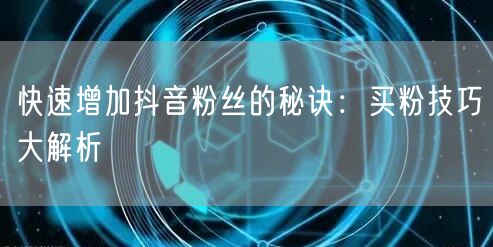 通过本文的解析,希望能够帮助你在抖音上实现粉丝数量的快速增长。记住,买粉只是手段之一,真正重要的是持续提供高质量的内容,与粉丝保持良好的互动关系。只有真正赢得粉丝的喜爱和信任,才能在抖音上取得长期的成功。
