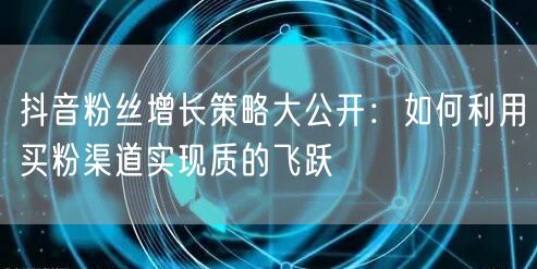 关键词:抖音粉丝增长、买粉渠道、社交媒体推广、营销策略、粉丝互动。