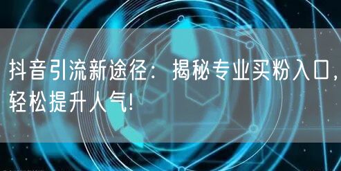 随着抖音平台的快速发展,越来越多的个人和企业开始关注抖音引流。如何快速增加粉丝和人气,成为许多用户关注的焦点。本文将为您揭秘抖音引流新途径,带您了解专业买粉入口,轻松提升人气!