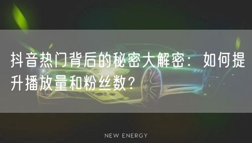 要想在抖音上获得更高的播放量和粉丝数,需要关注热门话题和趋势,优化内容创作,提高与观众的互动等。本文为你揭示了抖音热门背后的秘密,希望对你有所帮助。通过实践这些技巧,你可以在抖音上轻松打造爆款内容,吸引更多粉丝。